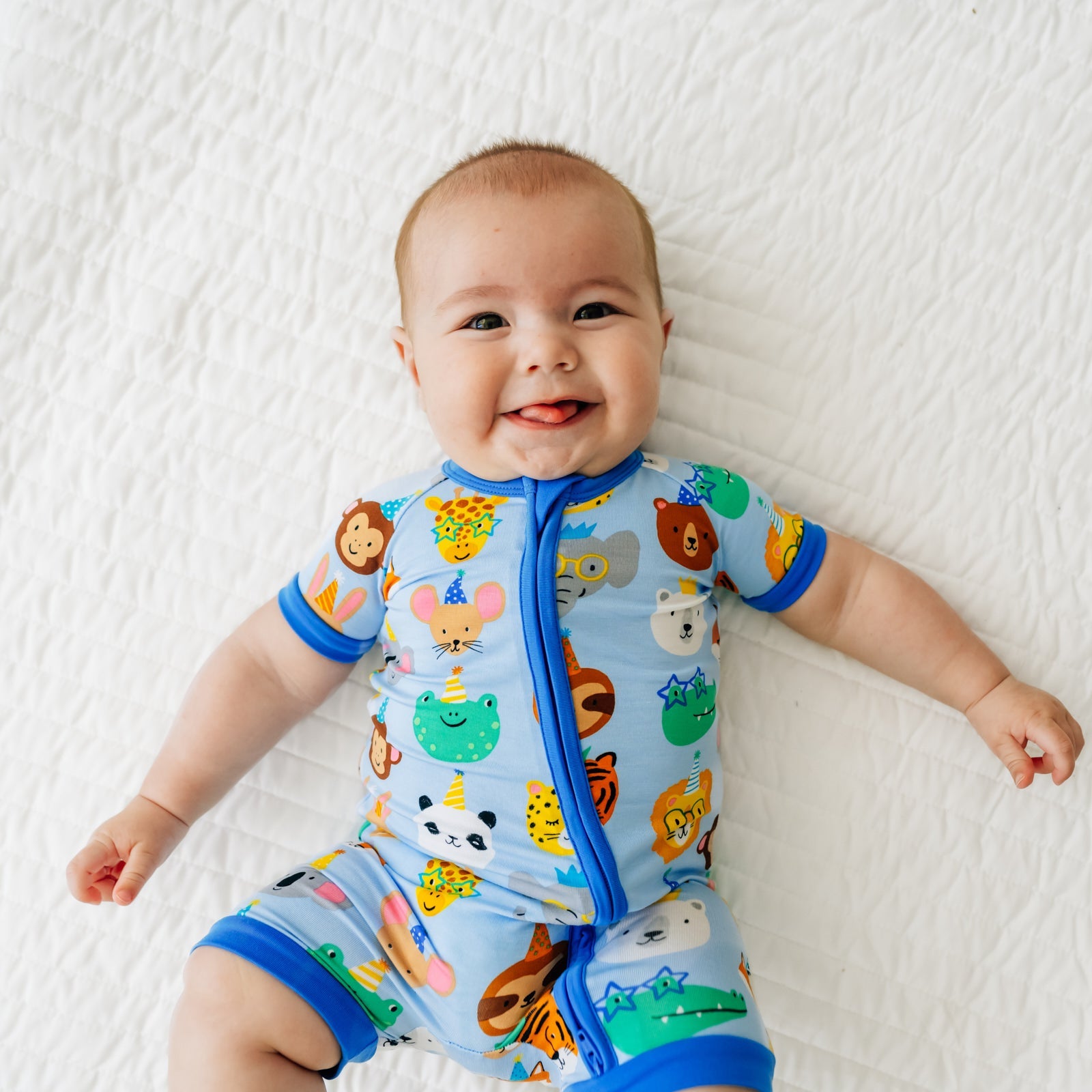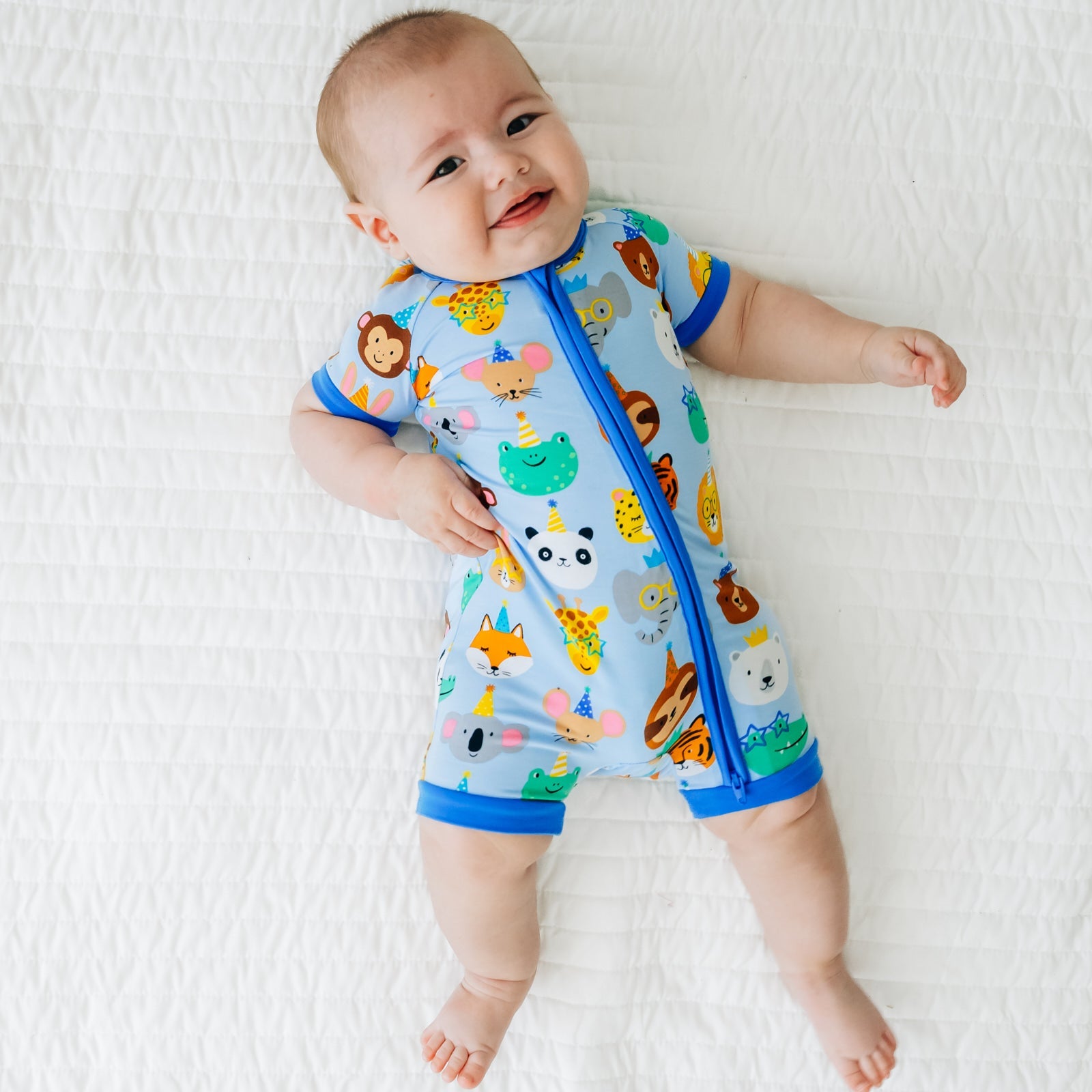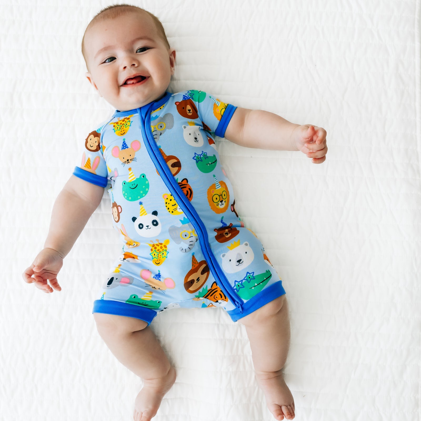 Let’s celebrate! This one-piece zipper pajama features giraffes. monkeys. elephants & more cute creatures that bring the birthday vibes on a blue background. Made from our signature Lunaluxe? Bamboo. with thoughtful features like a double-zipper that extends down the leg & no scratchy tags. Just the perfect birthday outfit ?? or birthday gift!