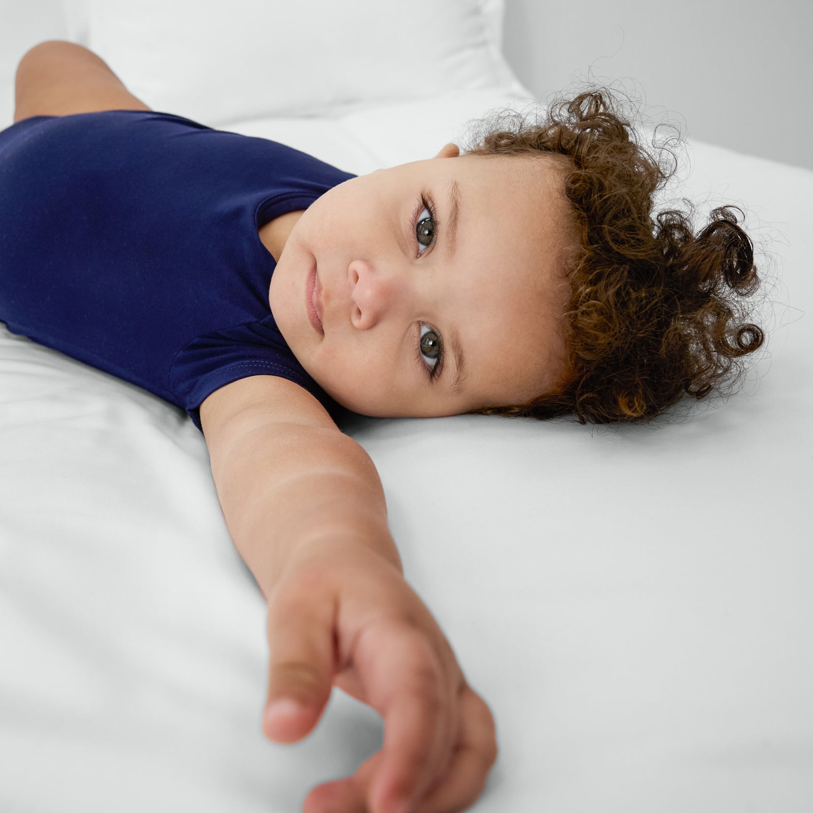 A must-have basic for baby’s closet! Made from our super-soft and durable Soluxe® Bamboo. this Classic Navy Bodysuit keeps your little one comfortable as they crawl. snooze. or take their first steps. The lap shoulders ensure fuss-free dressing while easy snaps make changes quick and simple. We love it paired with their fave LS shorts!