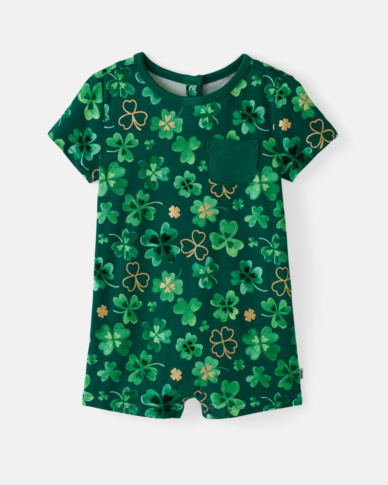 For your lucky charm. The Clover Cuties Pocket Shorty Romper is the perfect one-and-done outfit for St. Paddy’s Day and beyond. Made from soft and durable Soluxe® Bamboo. with snaps at the inseam for quick changes and an adorable front pocket.