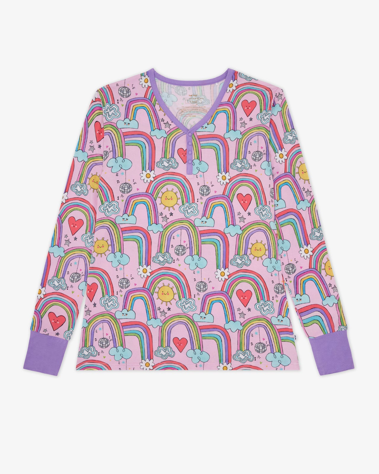 Dance the night away. mama! Made from our signature Lunaluxe? Bamboo. it’s buttery soft and designed for mommy & me matching. Featuring neckline snaps for easy nursing access and a whimsical rainbow print. it’s perfect for lounging around with your little loves. Pair with the coordinating pants for a cozy-cute look!