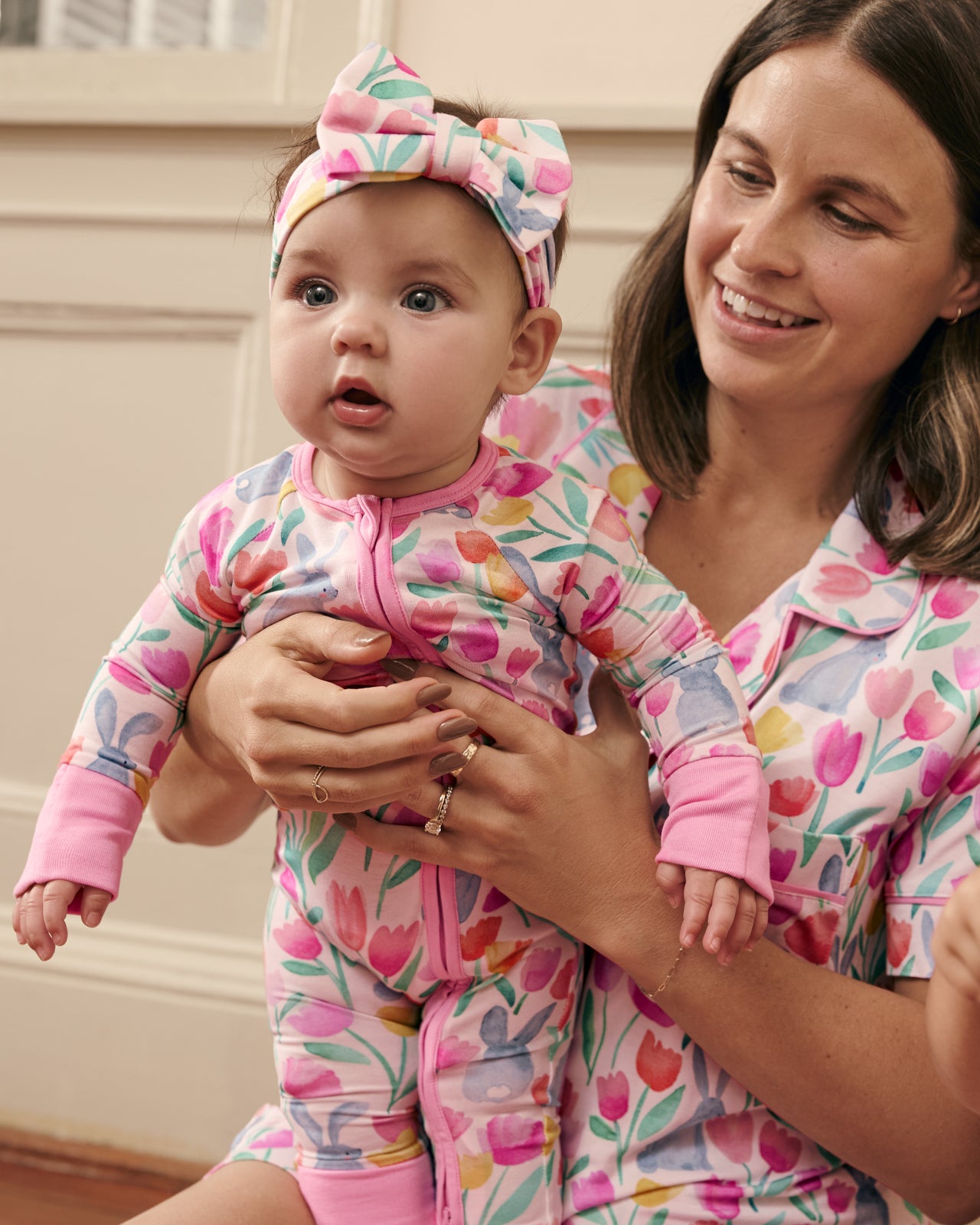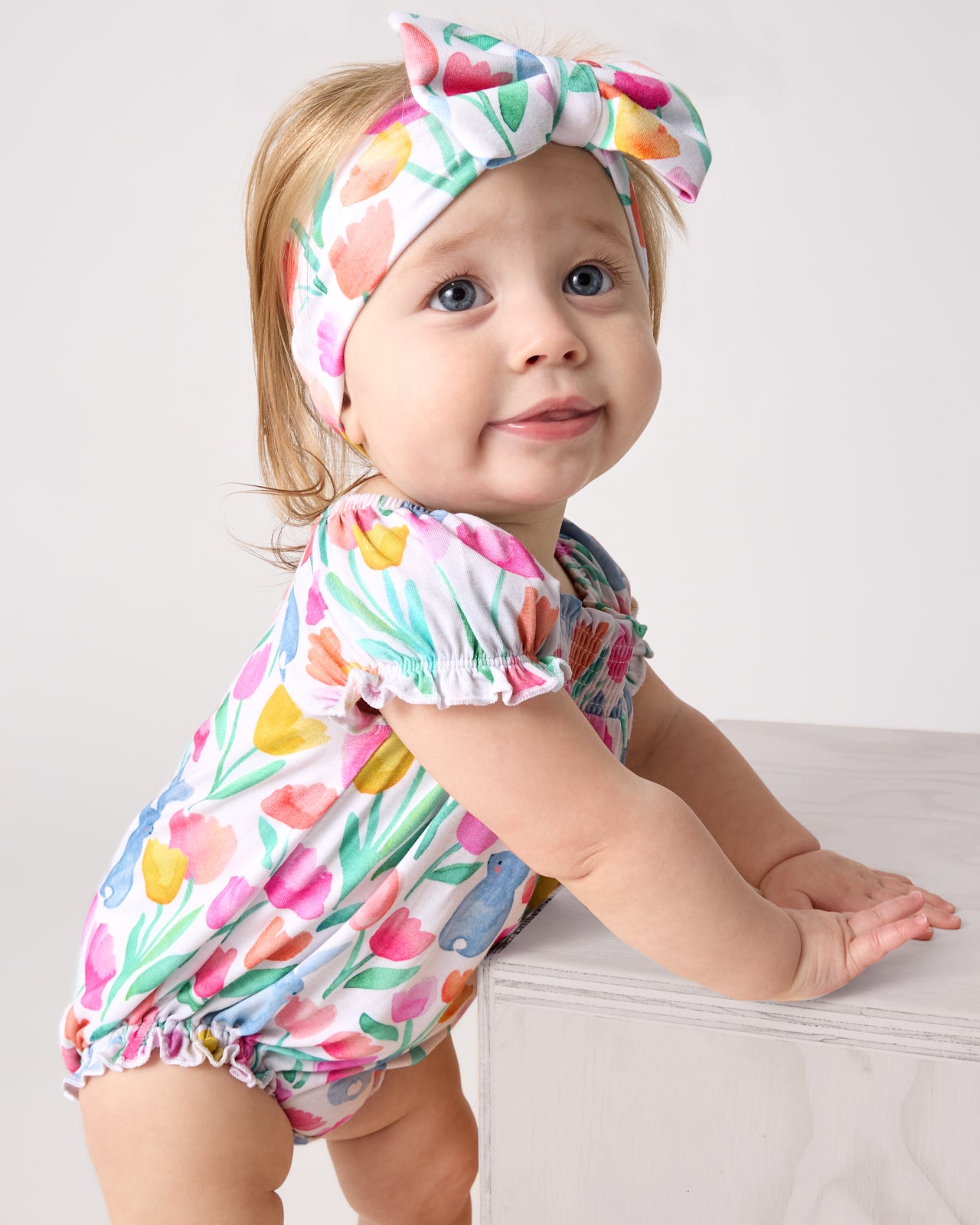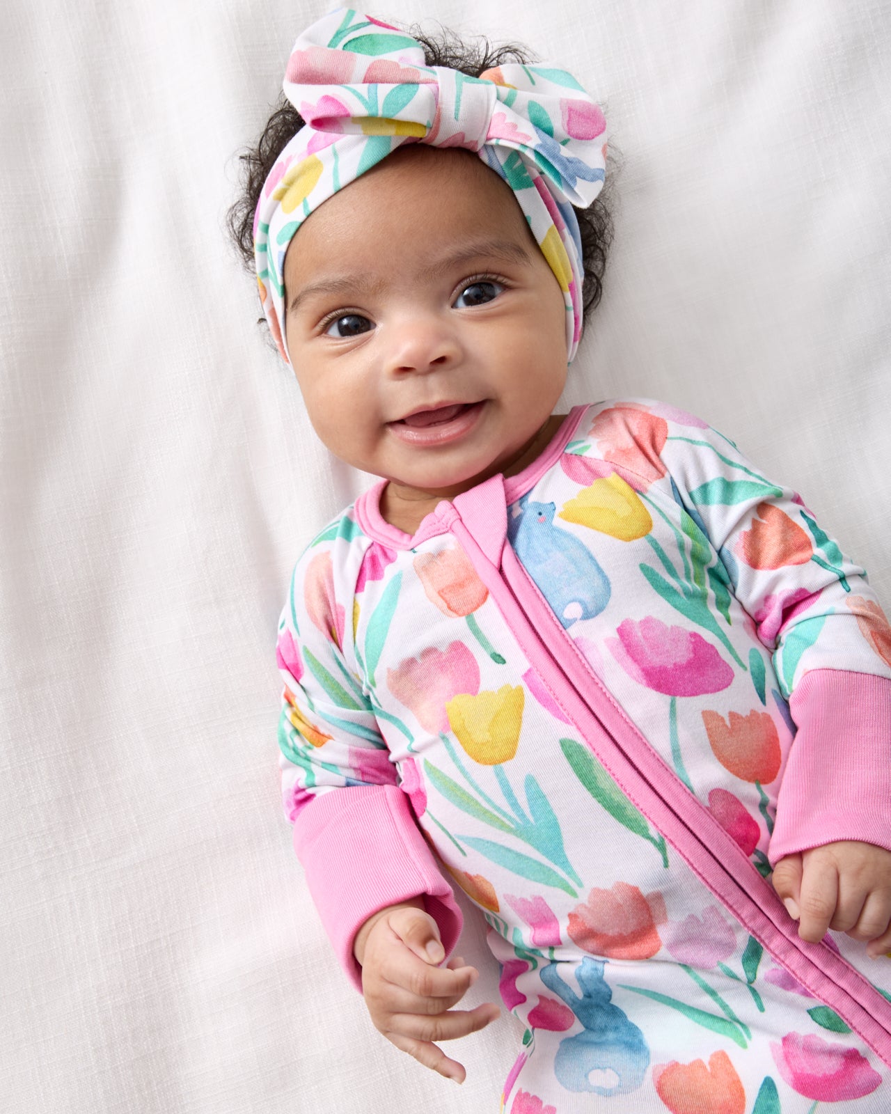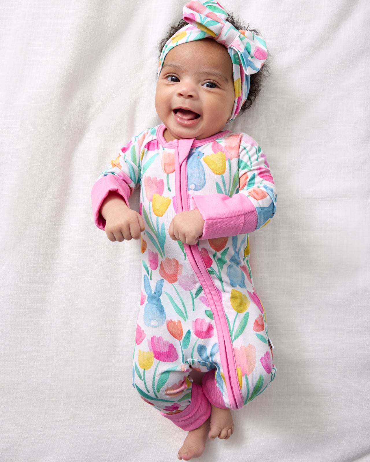 The sweetest finishing touch! The Garden Hop Luxe Bow Headband features watercolor tulips and sweet bunnies on ultra-soft Lunaluxe? Bamboo. This bow headband has real loops and never needs tying. Perfect for Easter photos and springtime adventures!