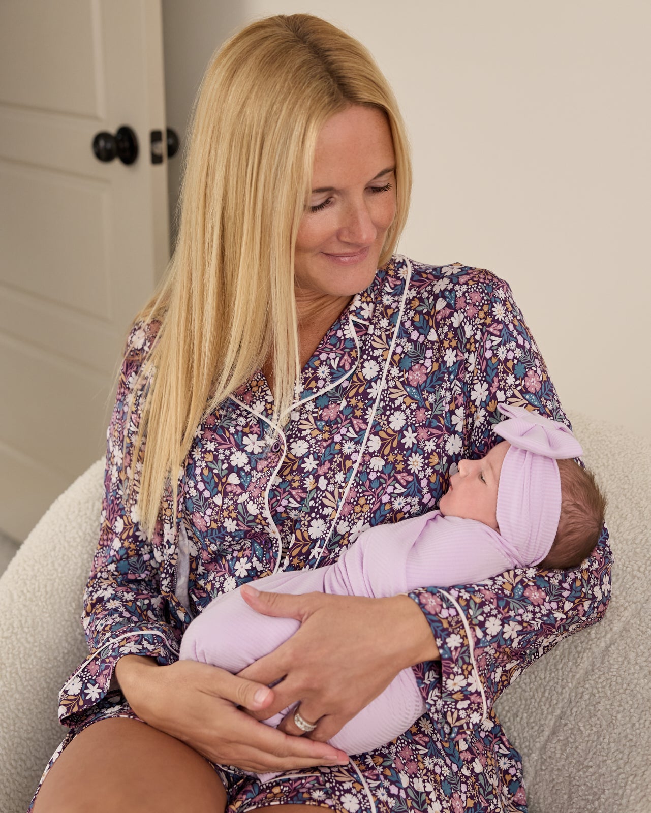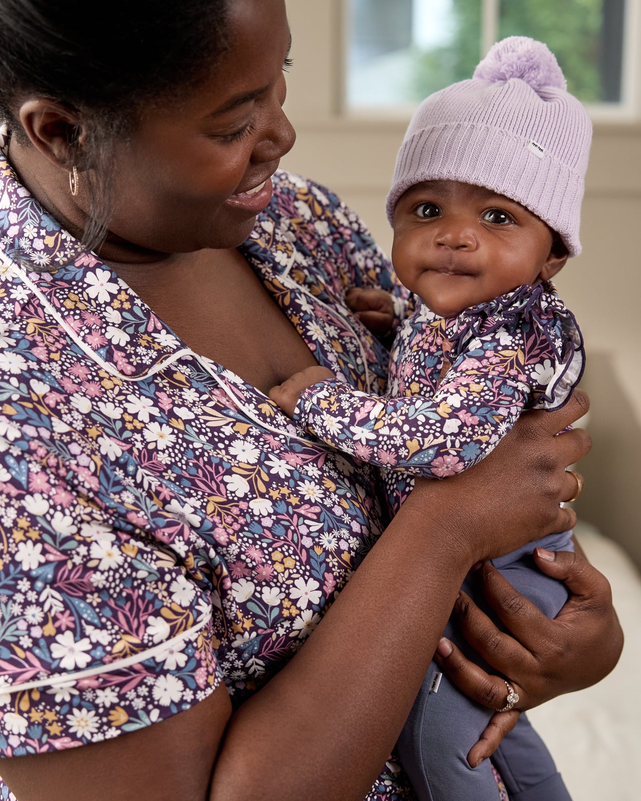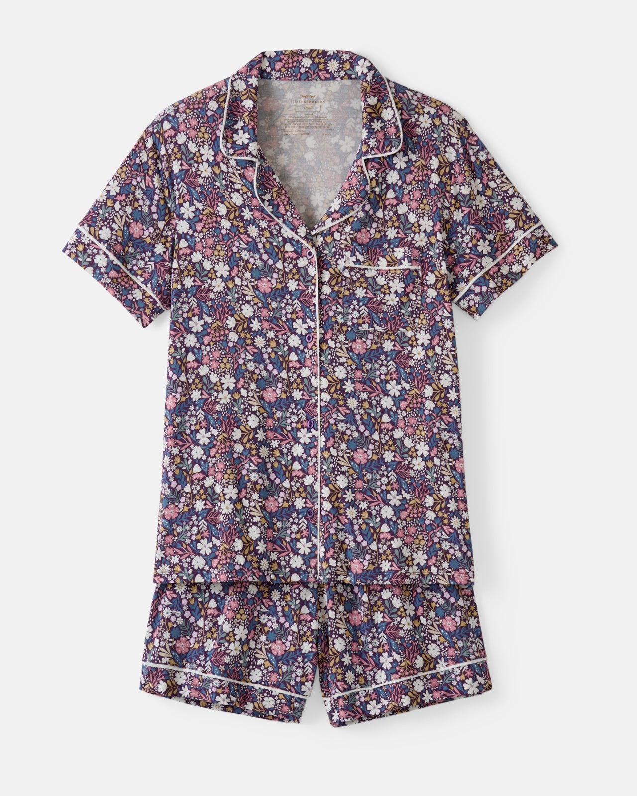 Midnight feeds are sweeter in matching PJs! This floral Pajama Set features a button-down top for easy nursing and comfy shorts with a bump-friendly waistband. Made from our signature bamboo fabric. with side pockets to keep essentials close. With its soft. tagless design. this dreamy set makes sleepless nights feel a little more luxe. Snag a matching look for baby!