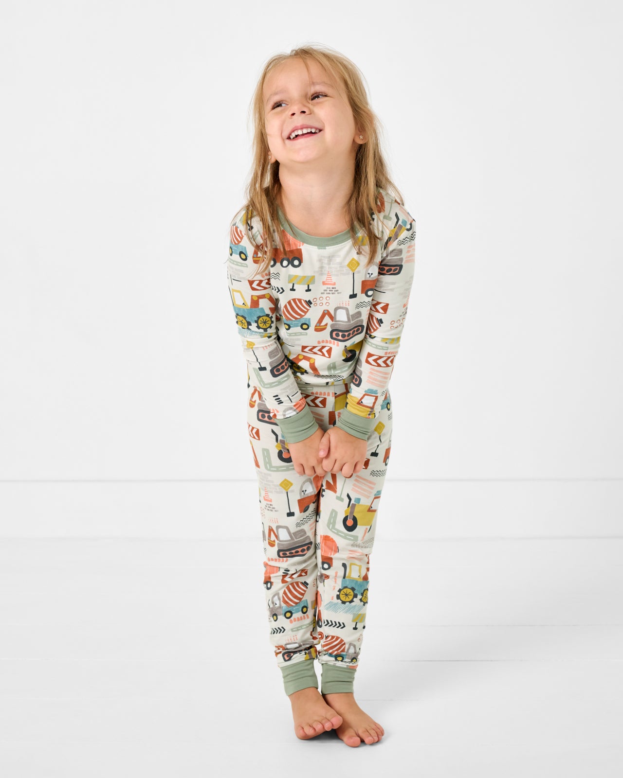 Time to build some sweet dreams! The Mini Builders Two-Piece Pajama Set features construction zone cuteness your little builder will love. Made from soft Lunaluxe® Bamboo. these bamboo kids pajamas feature long sleeves and matching pants with extra length to fit up to 3x longer. Perfect for family matching!