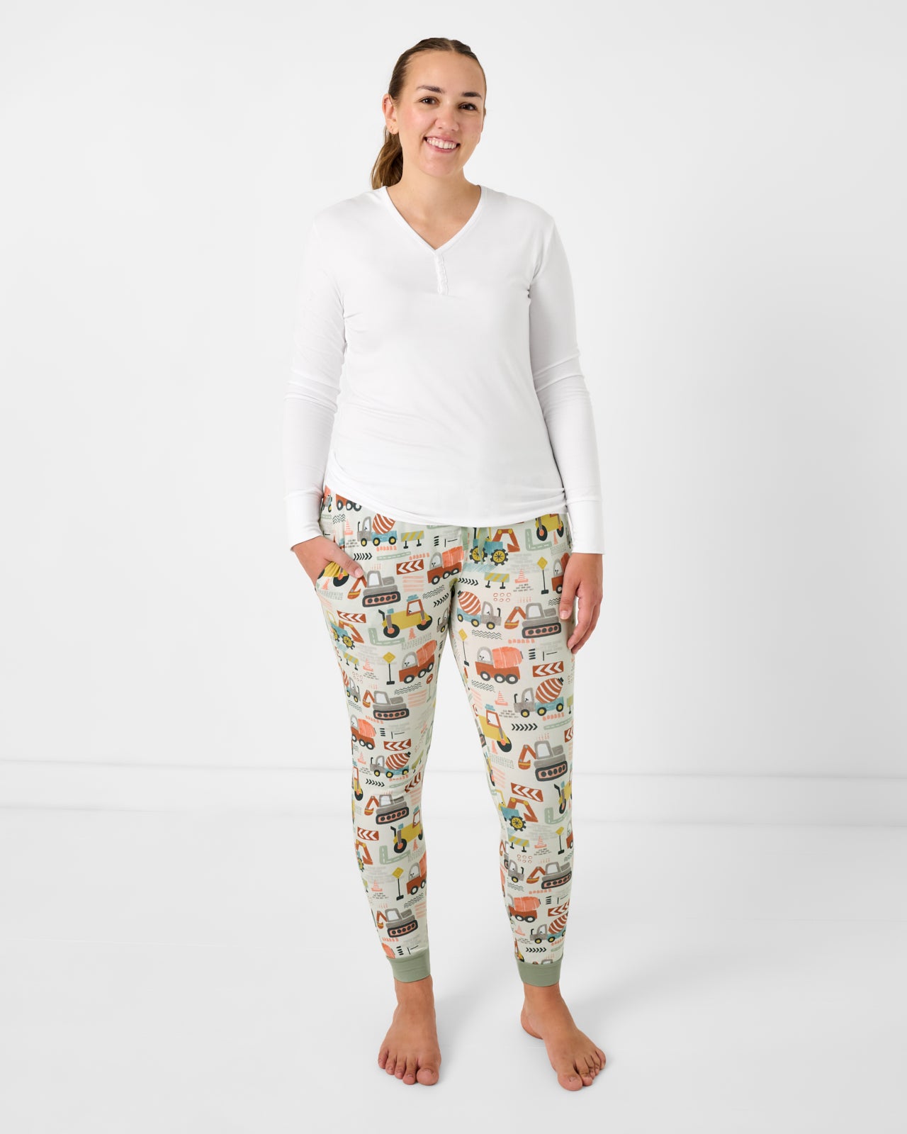 Building comfy from the ground up! The Mini Builders Women’s Pajama Pants feature construction zone cuteness made from custom-milled Lunaluxe® Bamboo. These women’s bamboo pajama pants have deep side pockets and a wide elastic waistband that’s bump friendly. Pair them with the Women’s Pajama Top in Bright White!
