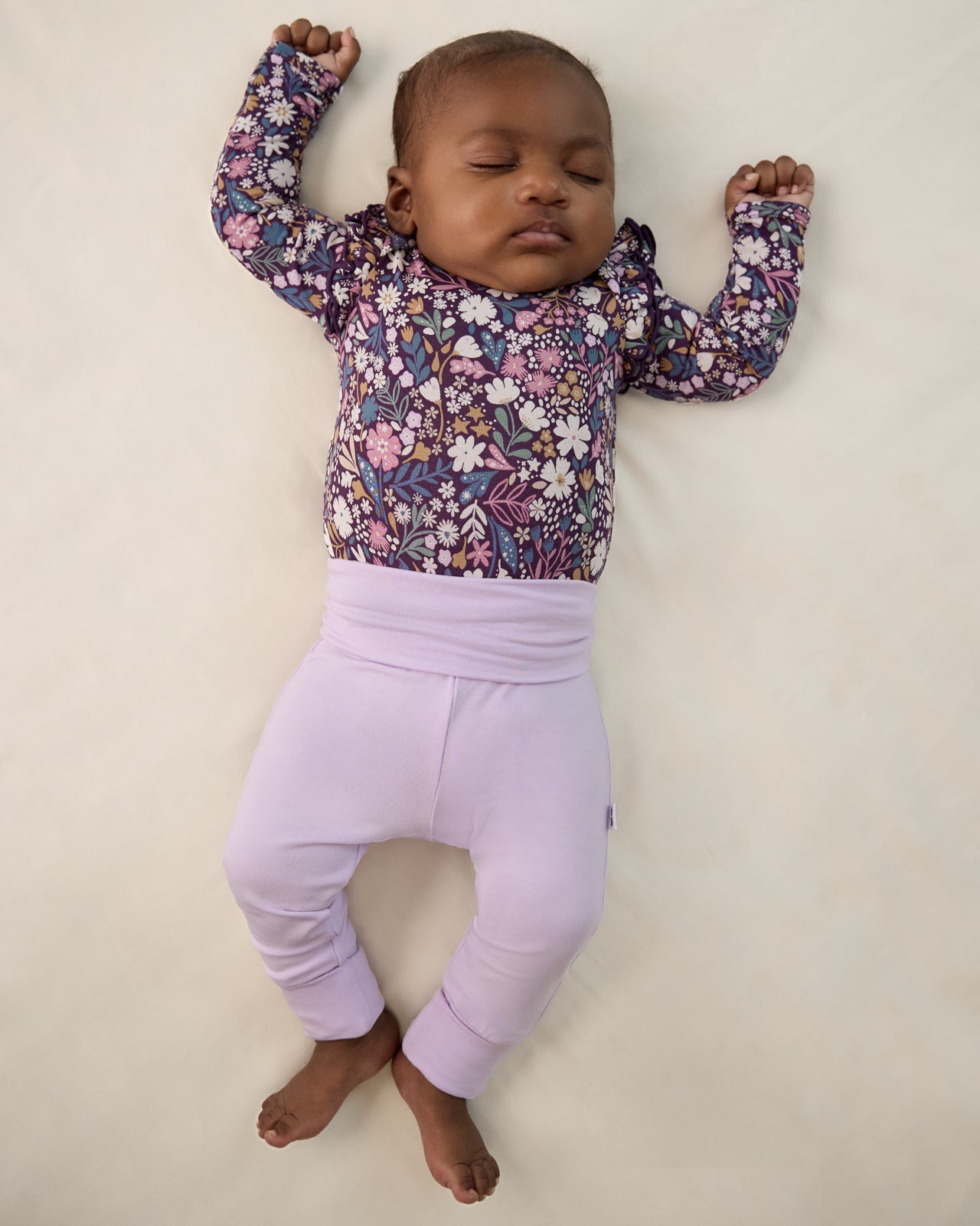 An essential for those precious early days. The Misty Lavender Fold-Over Leggings are made with durable bamboo. complete with an adjustable fold-over waistband that’s perfect for healing belly buttons. The fold-over foot cuffs keep tiny toes warm. while the tagless design protects even the most sensitive skin. Mix & match with other newborn faves!