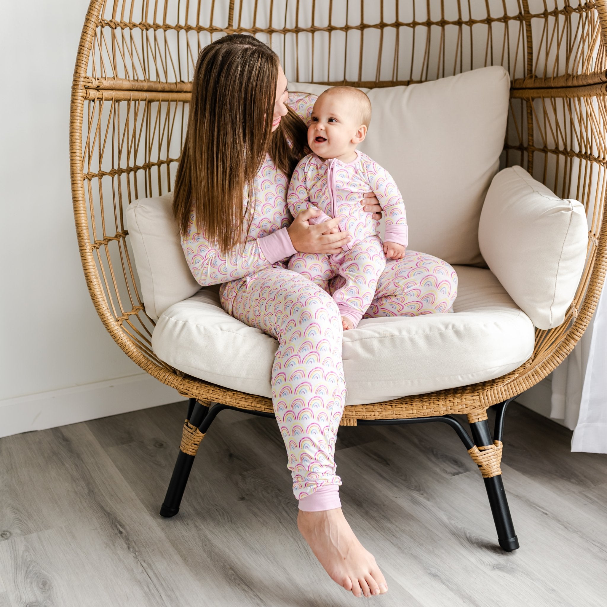 Snuggle up with the kiddos under countless dreamy rainbows! Crafted from our custom-milled Lunaluxe® Bamboo. these PJ Pants feature deep pockets. a comfy. stretchy waistband. and jogger-style cuffs. Pair it with the matching top to complete the set. then grab styles for matching with your little ones!