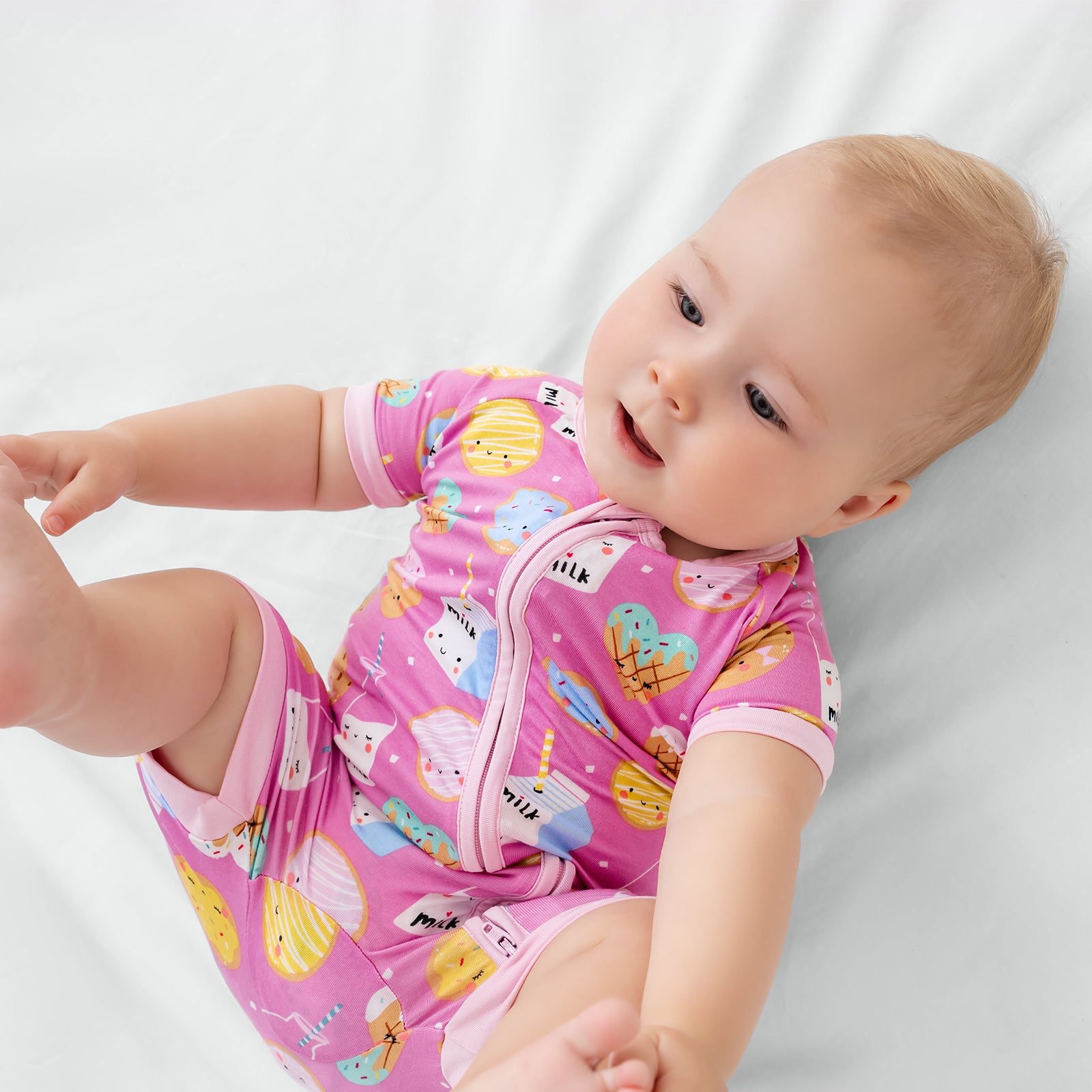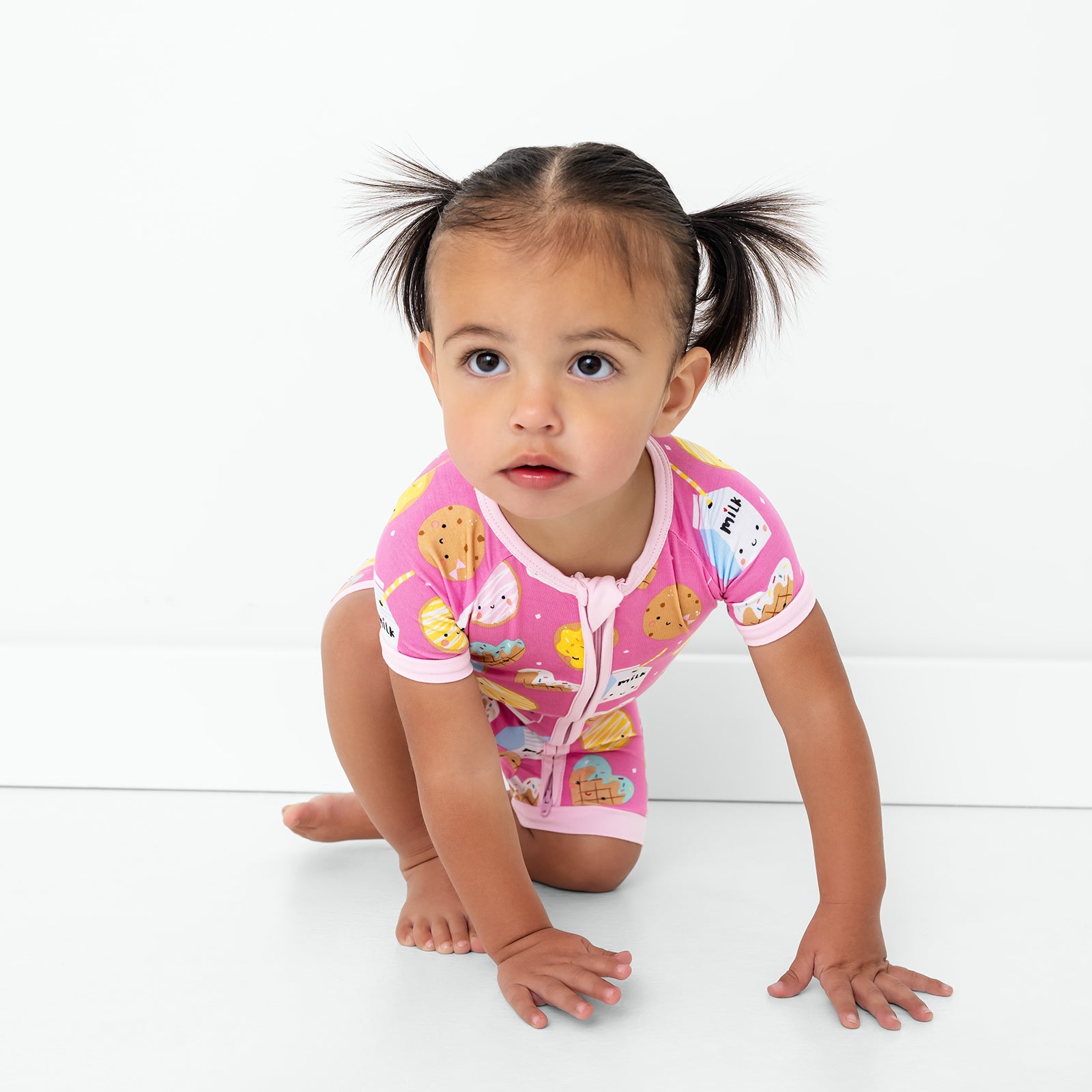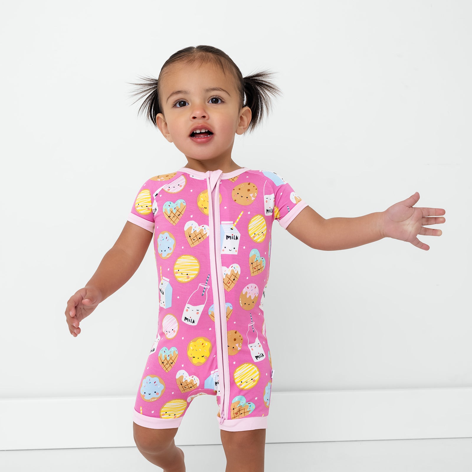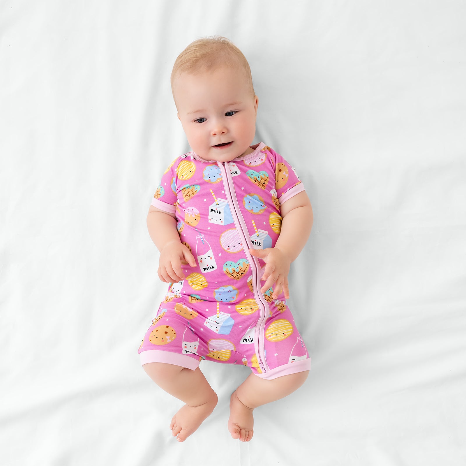 A Zippy as sweet as your little one’s smile! This fan-fave LS print features all different cookies & milk on a pink background. Made from our signature Lunaluxe® Bamboo. with thoughtful features like a double-zipper that extends down the leg and no scratchy tags. Snag styles for family matching!