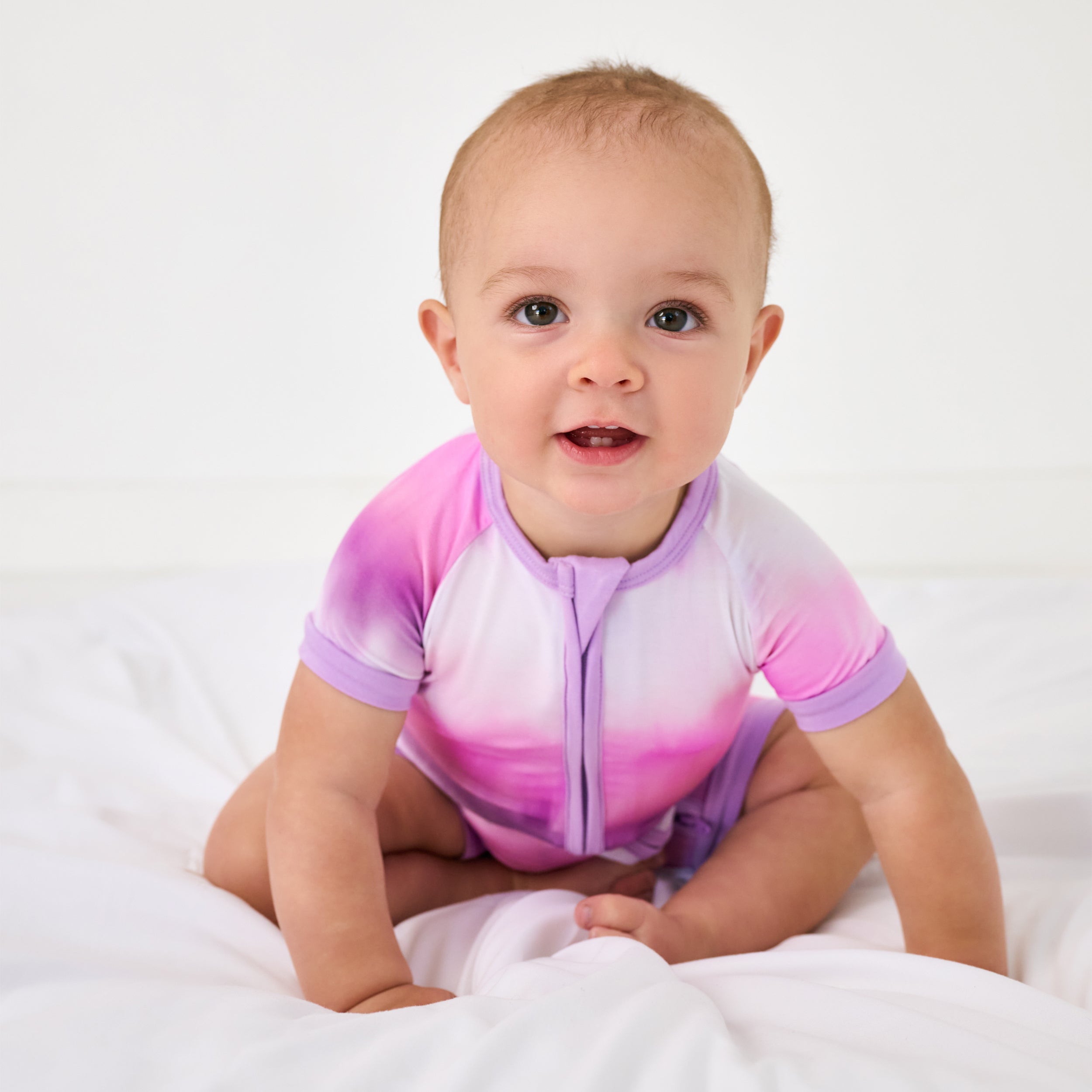 Drift off to sleep in soothing style! The Cosmic Mist Shorty Zippy brings dreamy vibes to bedtime with its pink ombr?? design. Made from our signature Lunaluxe? Bamboo that’s buttery soft and breathable. it features a double zipper for easy changes and is so ideal for warmer weather. Snag both colorways for the cutest sibling matching!