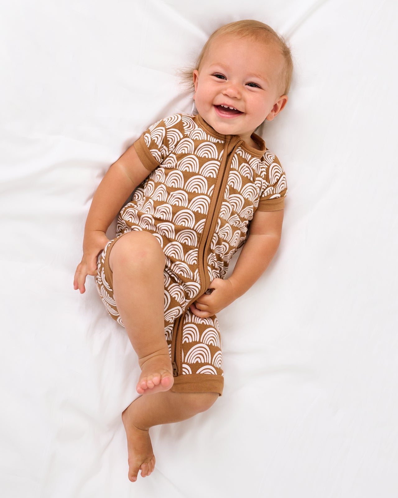 Calling all little dreamers! Featuring white rainbows on a neutral background. Rust Rainbows is a fan-favorite print. Made from our signature Lunaluxe? Bamboo. with thoughtful features like a double-zipper that extends down the leg & no scratchy tags. Snag styles for family matching!