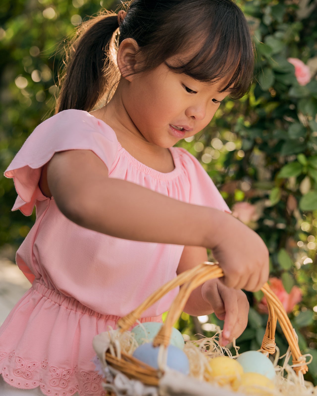 - Flower eyelet detail at sleeve and hem with scalloped edge