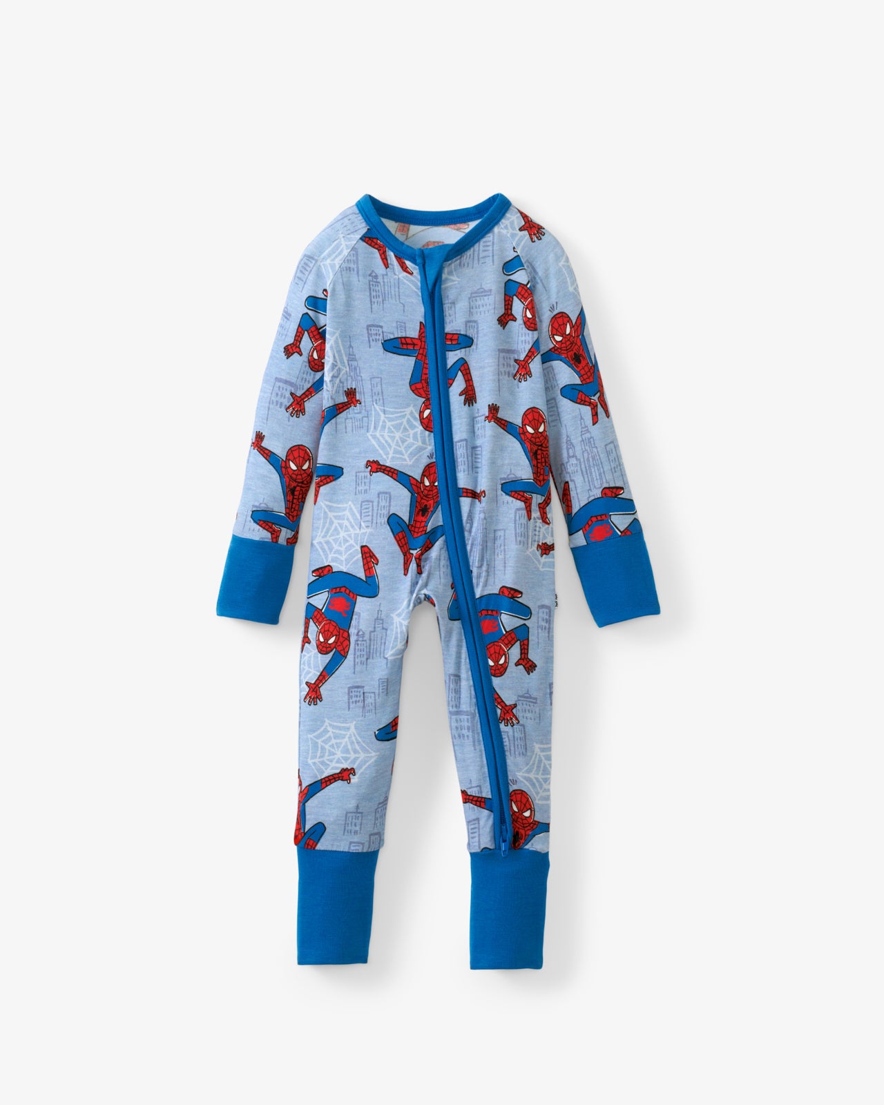 Web-slinging sweet dreams! The Spidey-Sense Zippy features Marvel’s Spider-Man on a light blue background. Made from our signature Lunaluxe® Bamboo. it’s ultra-soft with fold-over mittens. convertible foot cuffs. and a double zipper for easy changes. Snag matching styles for sibling moments!