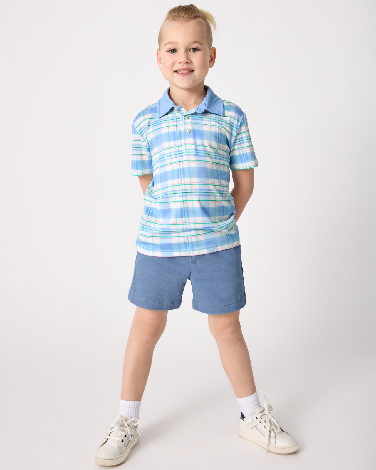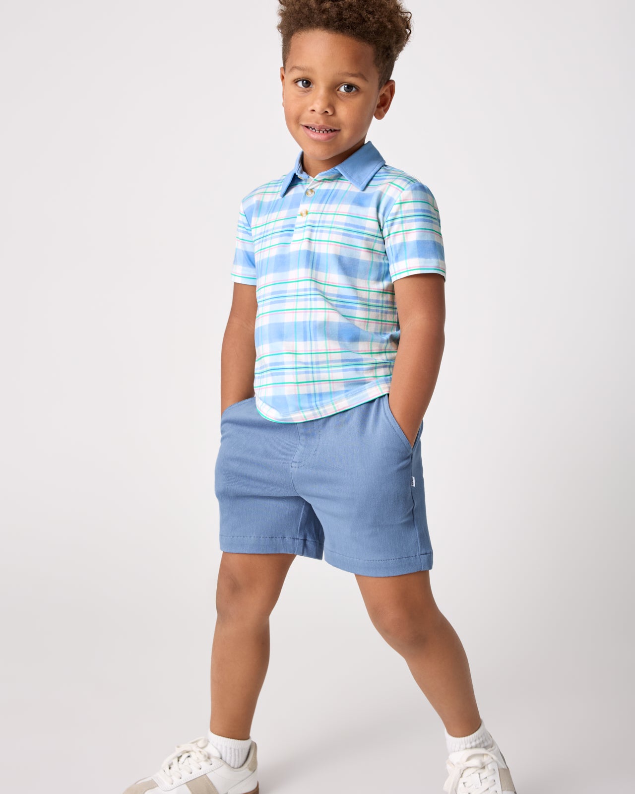 Easter best. The Springtime Plaid Polo Shirt features a classic plaid in soft blue and mint green tones. Made from soft and durable Soluxe® Bamboo. this boys polo shirt has a collared neckline and relaxed fit that takes them from playtime to picture time. Pair it with their fave LS bottoms!