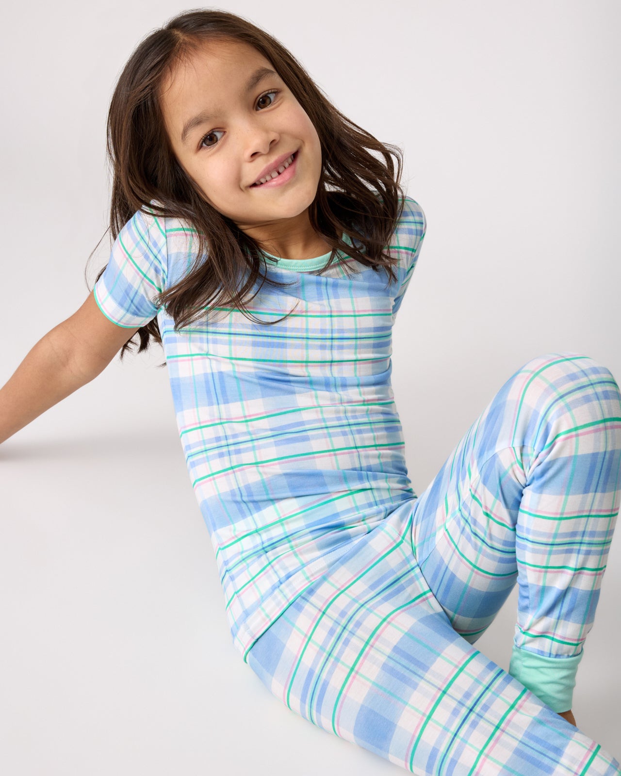 A fresh take on Easter. The Springtime Plaid Two-Piece Pajama Set features a classic plaid in soft blue and mint green tones. Made from our signature Lunaluxe® Bamboo. it’s ultra-soft with a short-sleeve top and matching pants made for comfort (and potty training!). No snaps. no tags ??just comfy-cute jams for your little one.
