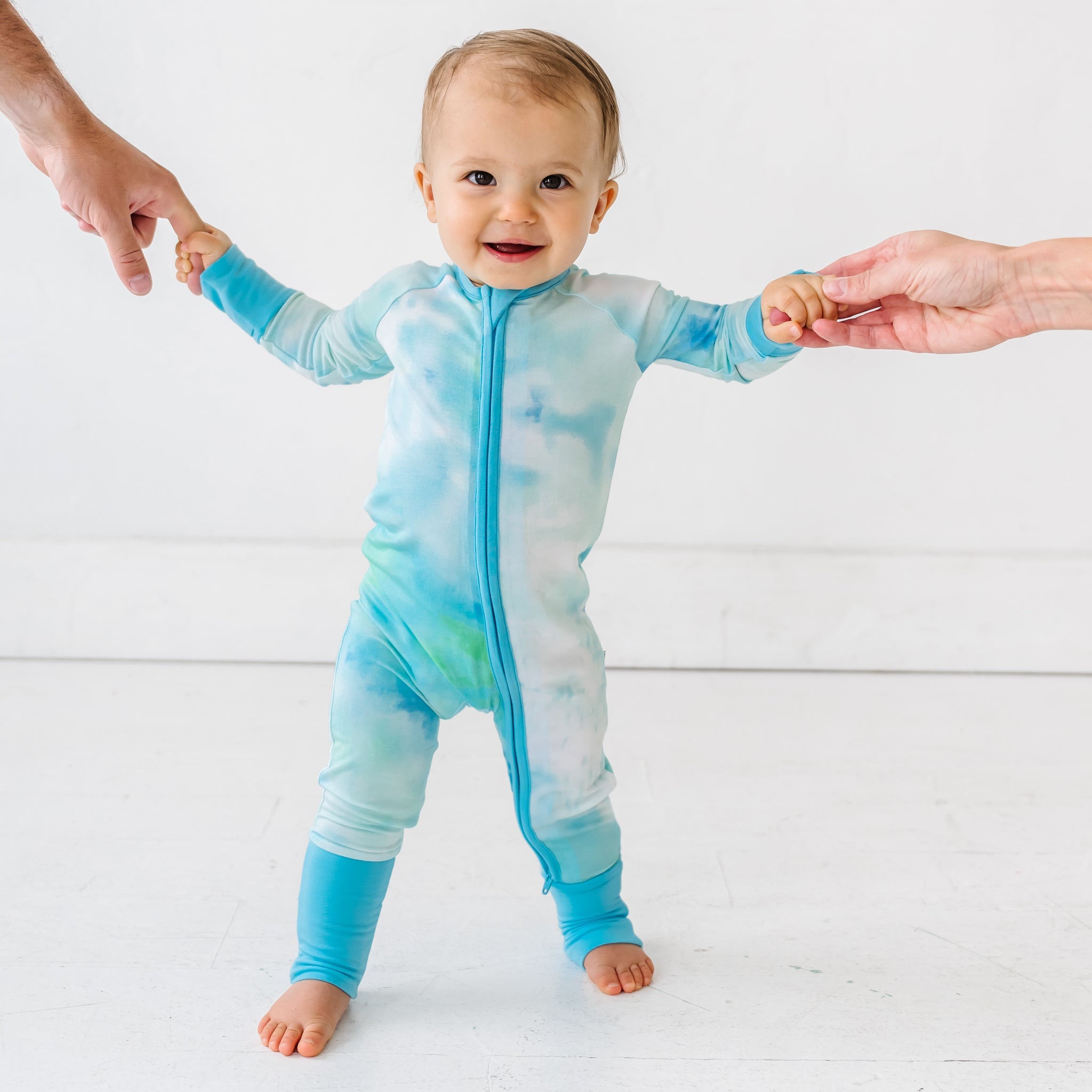 Dive into a sea of sweet dreams with soothing swirls of blue and green. Made from our signature Lunaluxe® Bamboo. this Zippy is designed with thoughtful features like fold-over feet & mittens. a 2-way zipper. and no scratchy tags. Grab styles for full family matching!