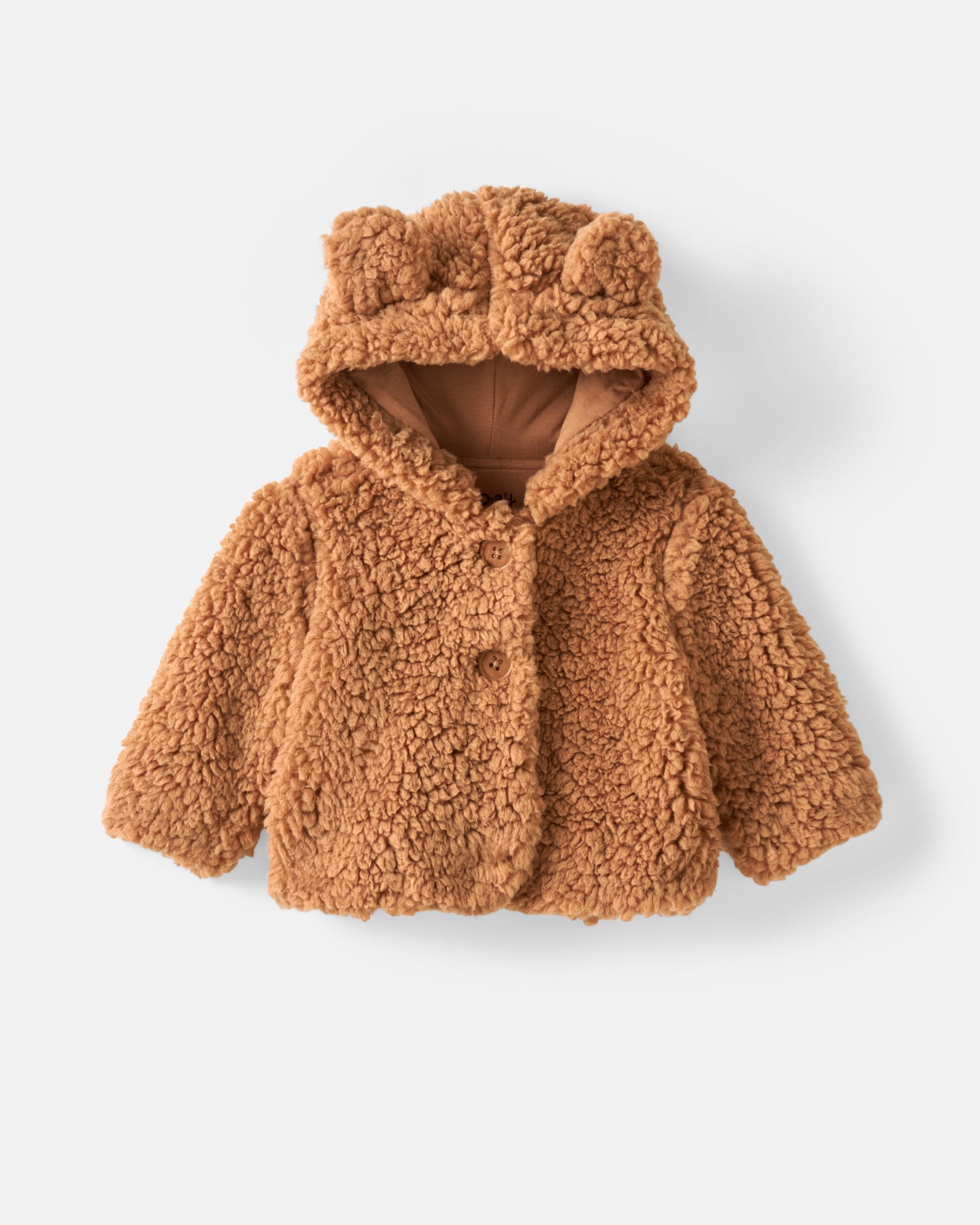 Keep your little cub cozy. This adorable Chestnut Brown Sherpa Baby Jacket is the softest winter essential for baby. Made from Soluxe® Bamboo sherpa. complete with two cute buttons. 3D bear ear details and a soft jersey lining. Bundle them up for winter adventures and get ready for all the awws!