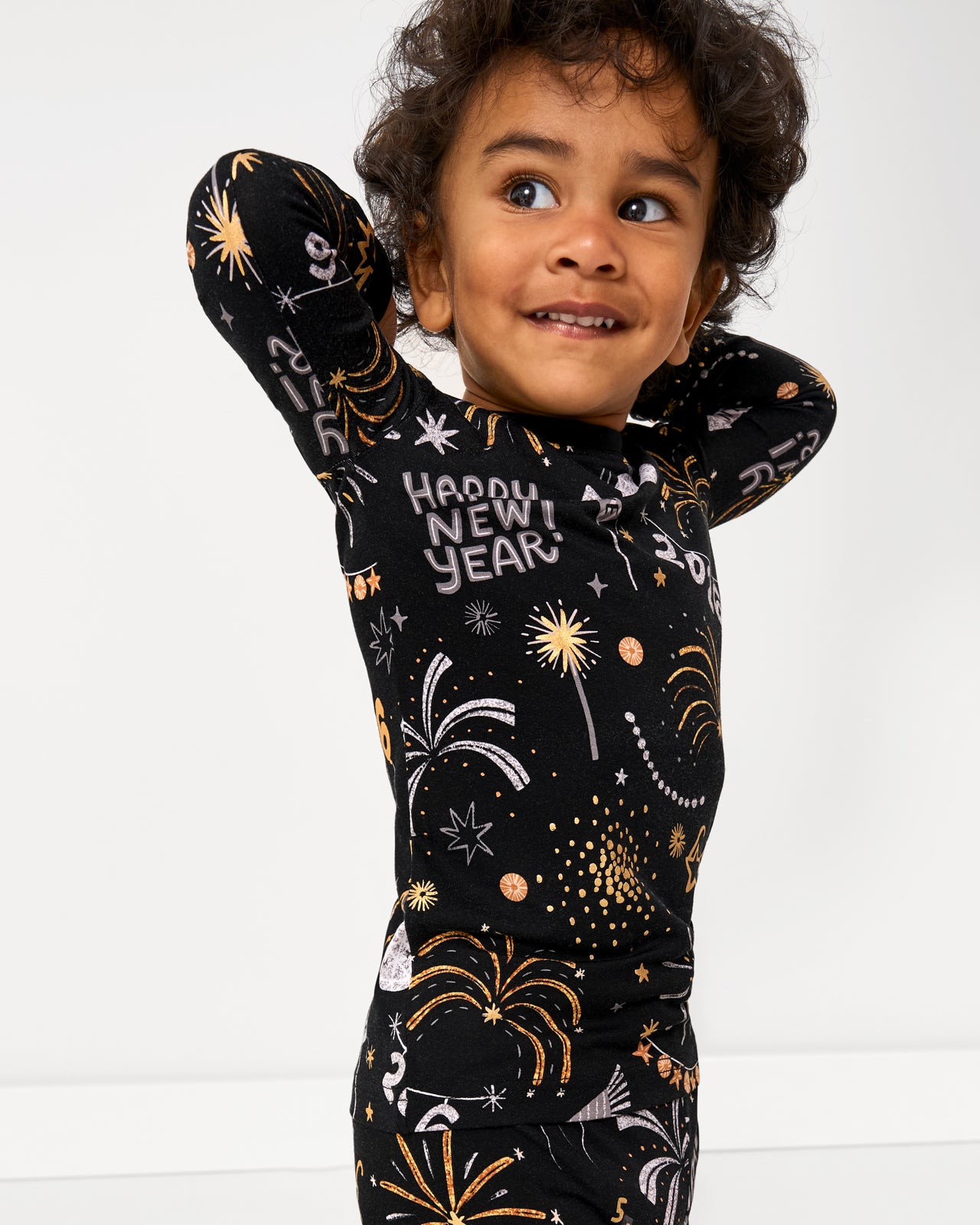 Here comes 2026! The Cozy Countdown Two-Piece Pajama Set features festive fireworks and gold foil details to ring in the new year. Made from soft Lunaluxe® Bamboo. this matching pajama set includes long sleeves and pants with extra length to fit up to 3x longer. Perfect for NYE family matching!