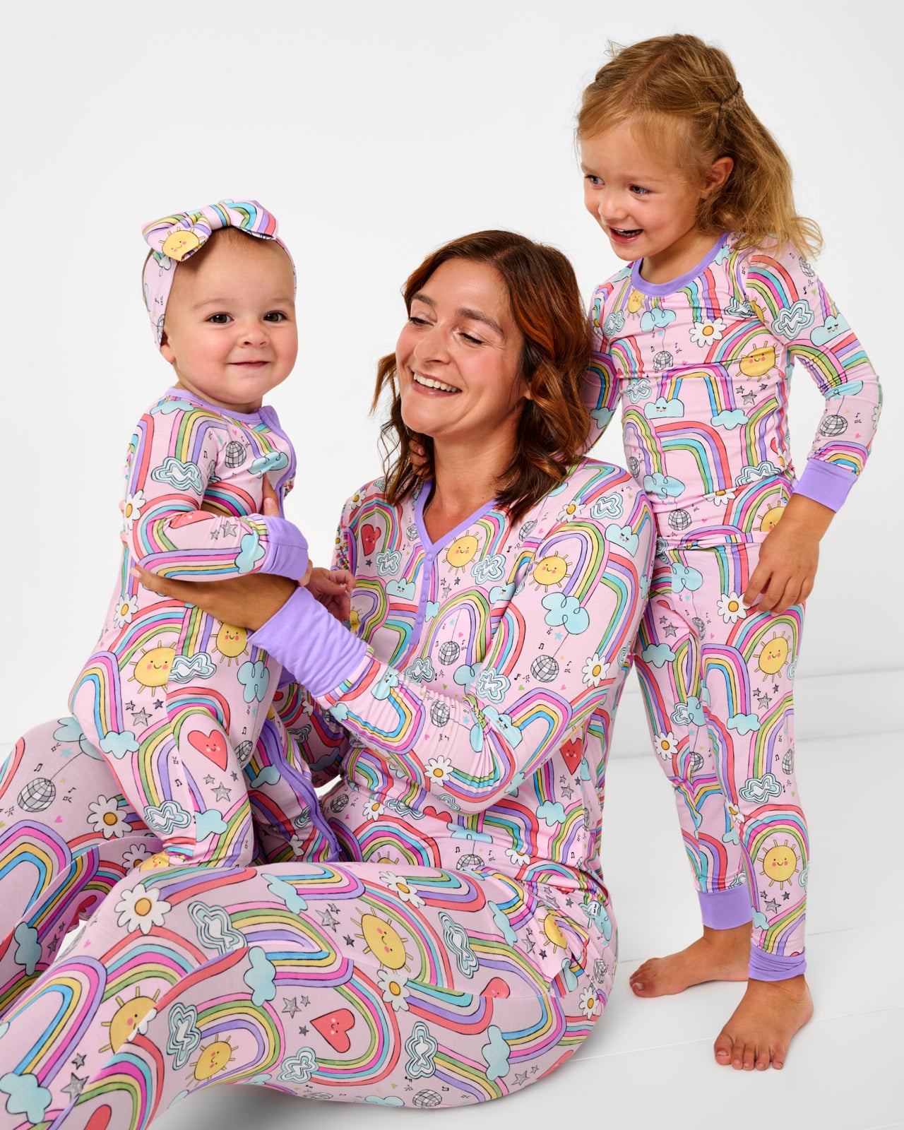 Dance the night away. mama! Made from our signature Lunaluxe? Bamboo. it’s buttery soft and designed for mommy & me matching. Featuring neckline snaps for easy nursing access and a whimsical rainbow print. it’s perfect for lounging around with your little loves. Pair with the coordinating pants for a cozy-cute look!