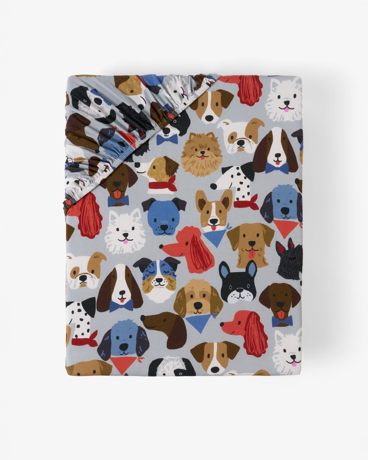 Puppy Parade features an eclectic mix of beloved dog faces ??including golden retrievers. corgis. poodles. dachshunds. and more ??nestled together on a light gray background. Accessories like bandanas and bows add a charming spin.