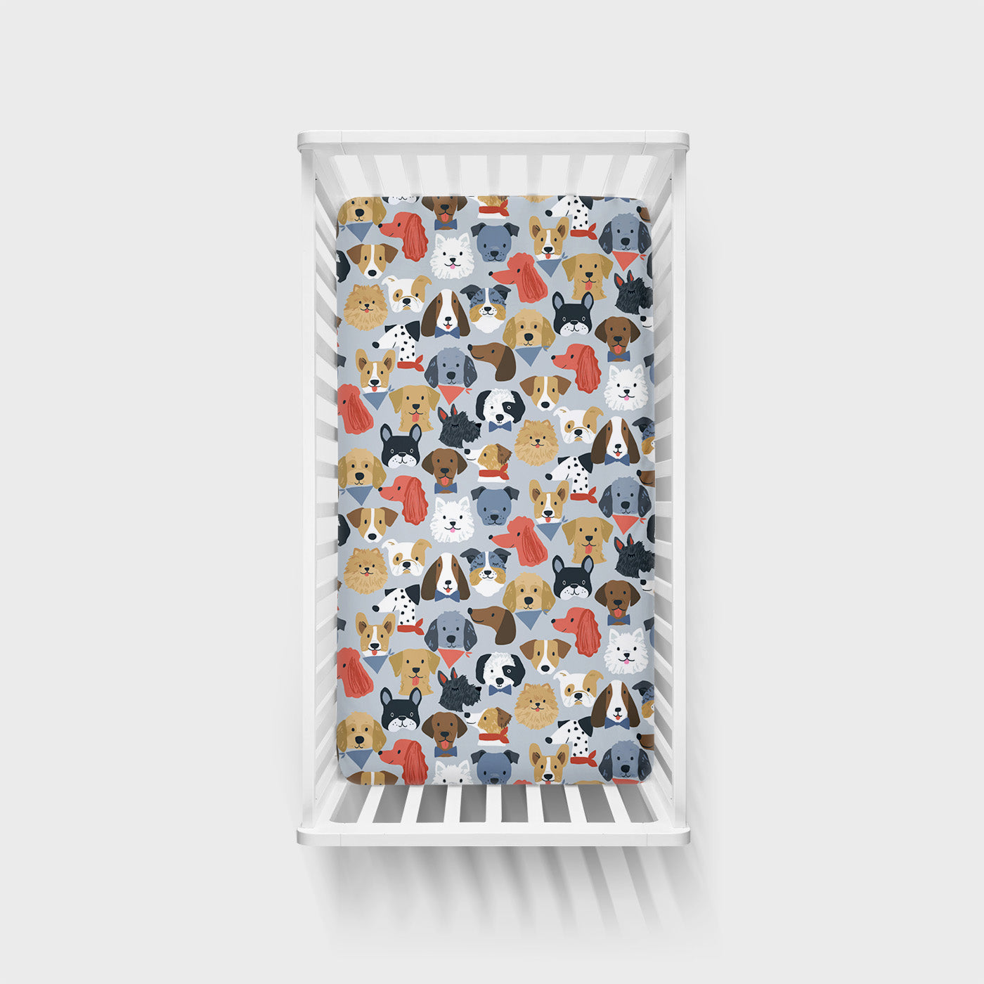 Gray Puppy Parade Fitted Crib Sheet