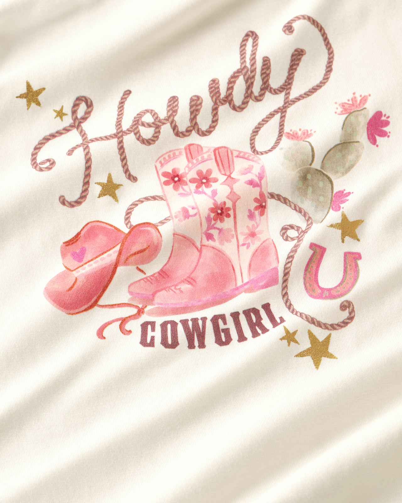 Calling all cowgirls! The Howdy Cowgirl Puff Sleeve Tee features the cutest western graphic with Howdy Cowgirl text overlay. Made from durable Soluxe® Bamboo. this girls t shirt has adorable puff cap sleeves and a slim fit. Pair it with the Bandana Blues Denim Skort for the cutest spring look!
