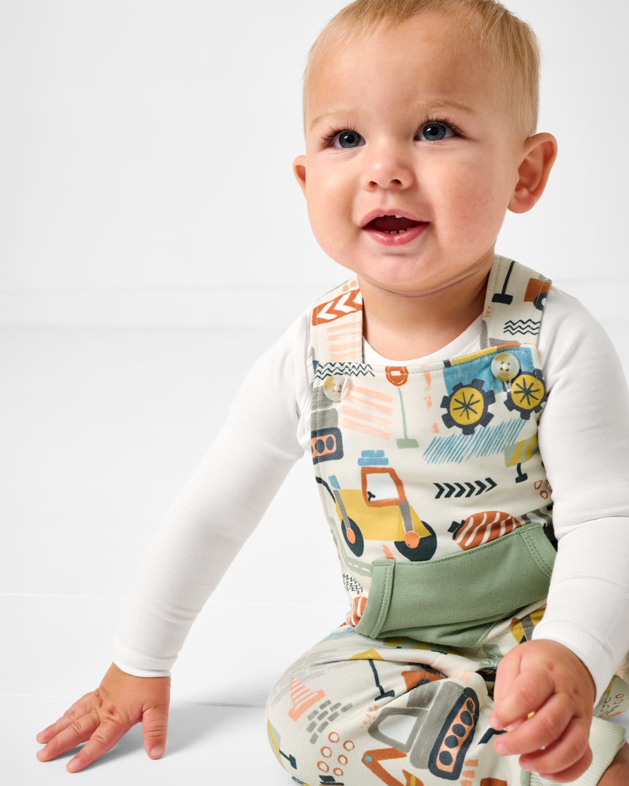 Ready to build some fun! The Mini Builders Kangaroo Pocket Overall features construction zone cuteness your little builder will love. Made from durable Soluxe® Bamboo. these baby overalls have adjustable straps. a front kangaroo pocket for storing tiny tools. and ribbed cuffs that stay in place. Perfect for layering over their fave LS tees!