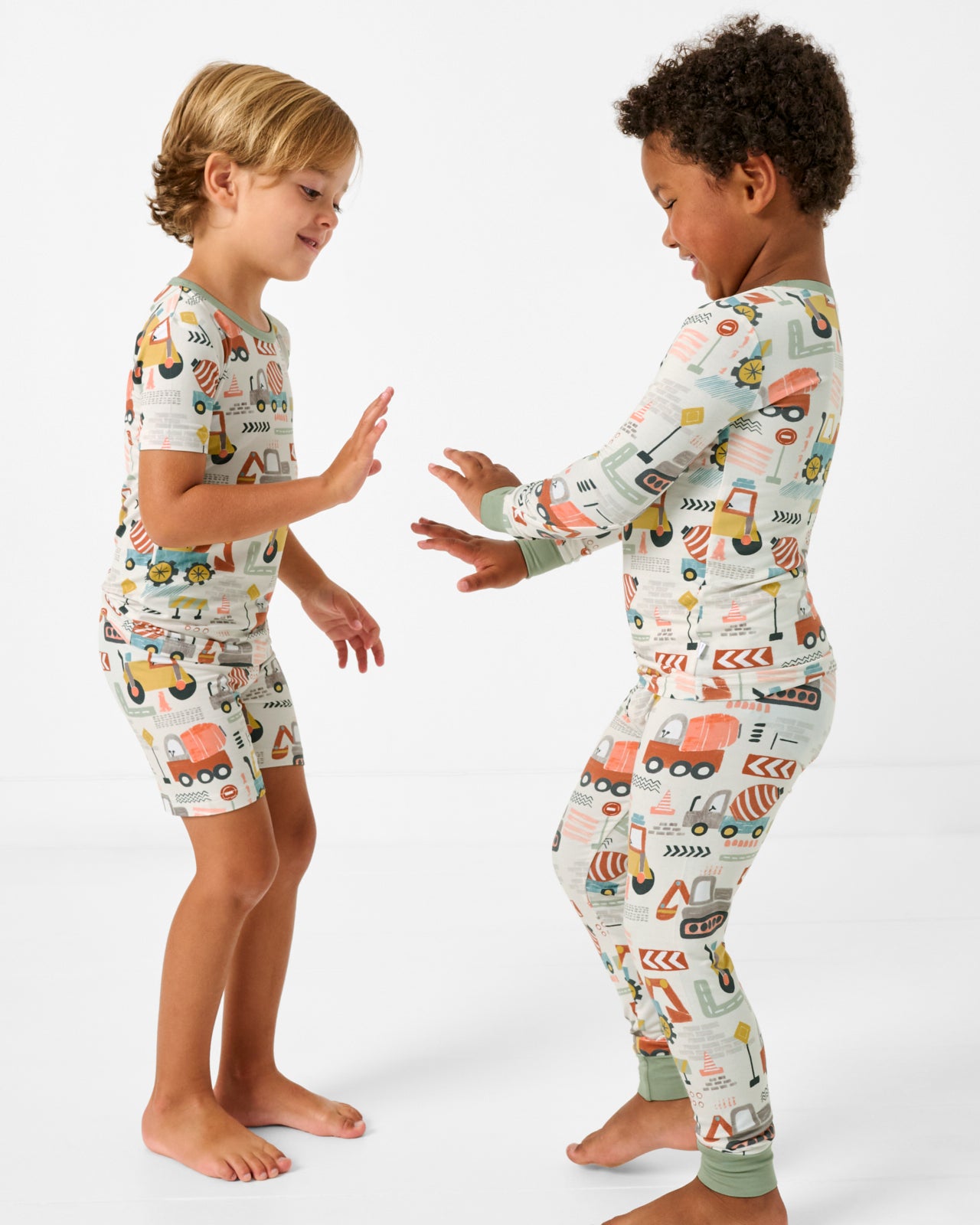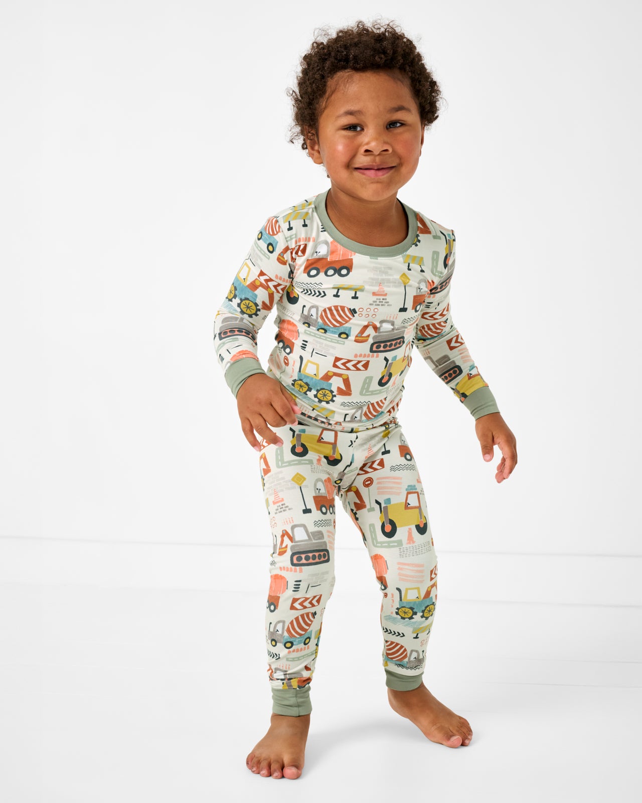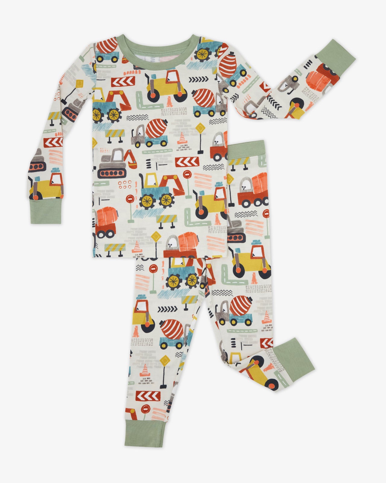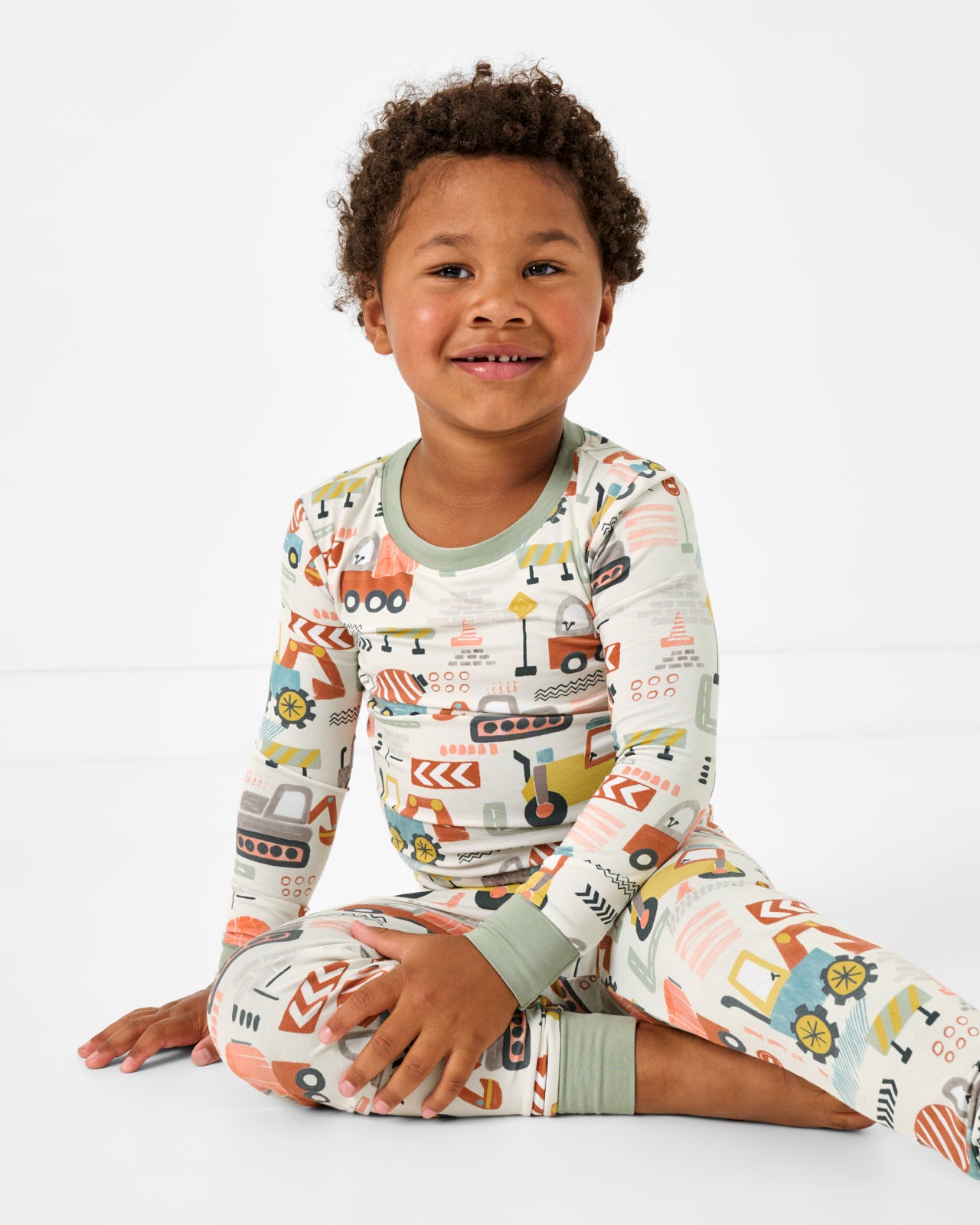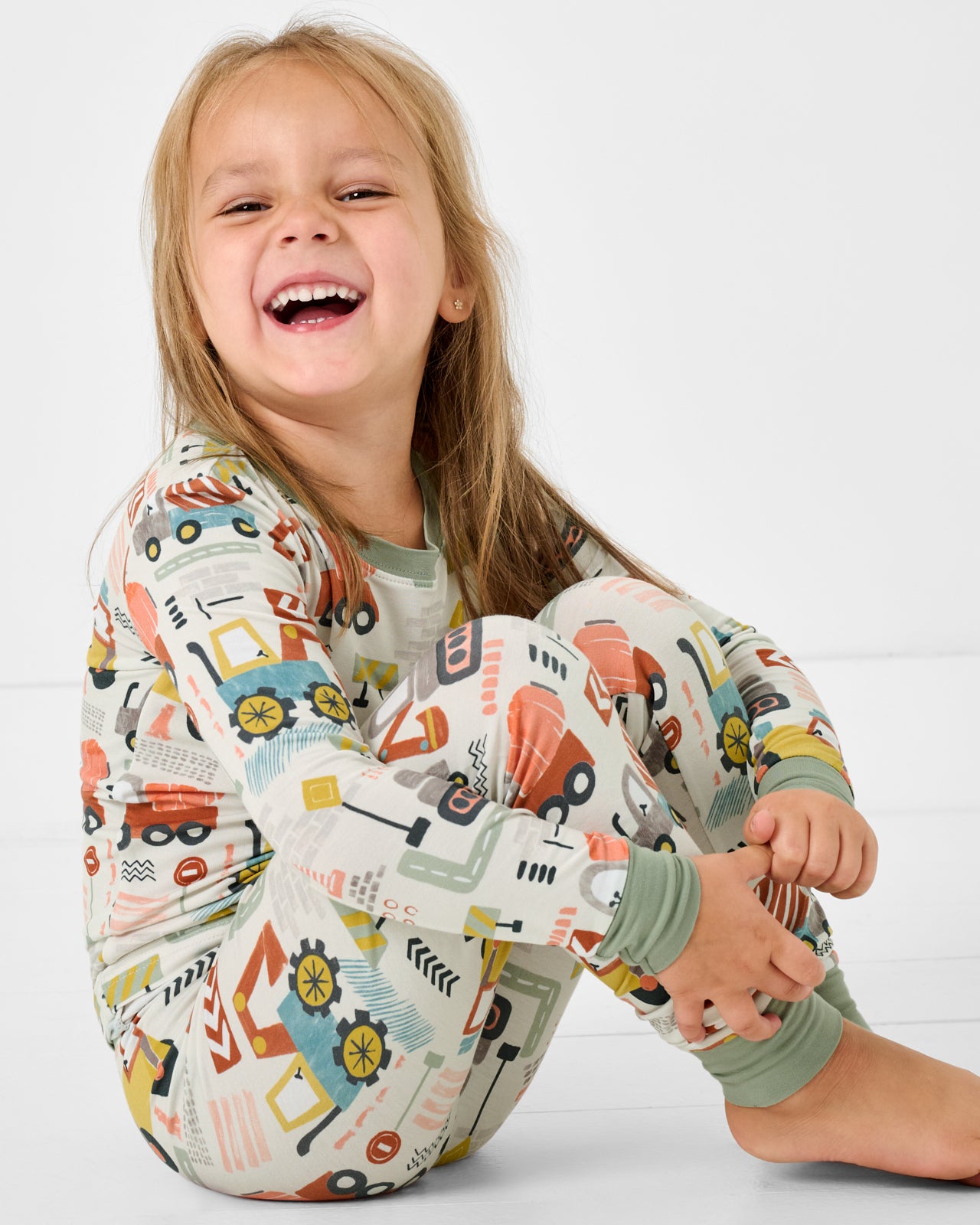 Time to build some sweet dreams! The Mini Builders Two-Piece Pajama Set features construction zone cuteness your little builder will love. Made from soft Lunaluxe® Bamboo. these bamboo kids pajamas feature long sleeves and matching pants with extra length to fit up to 3x longer. Perfect for family matching!