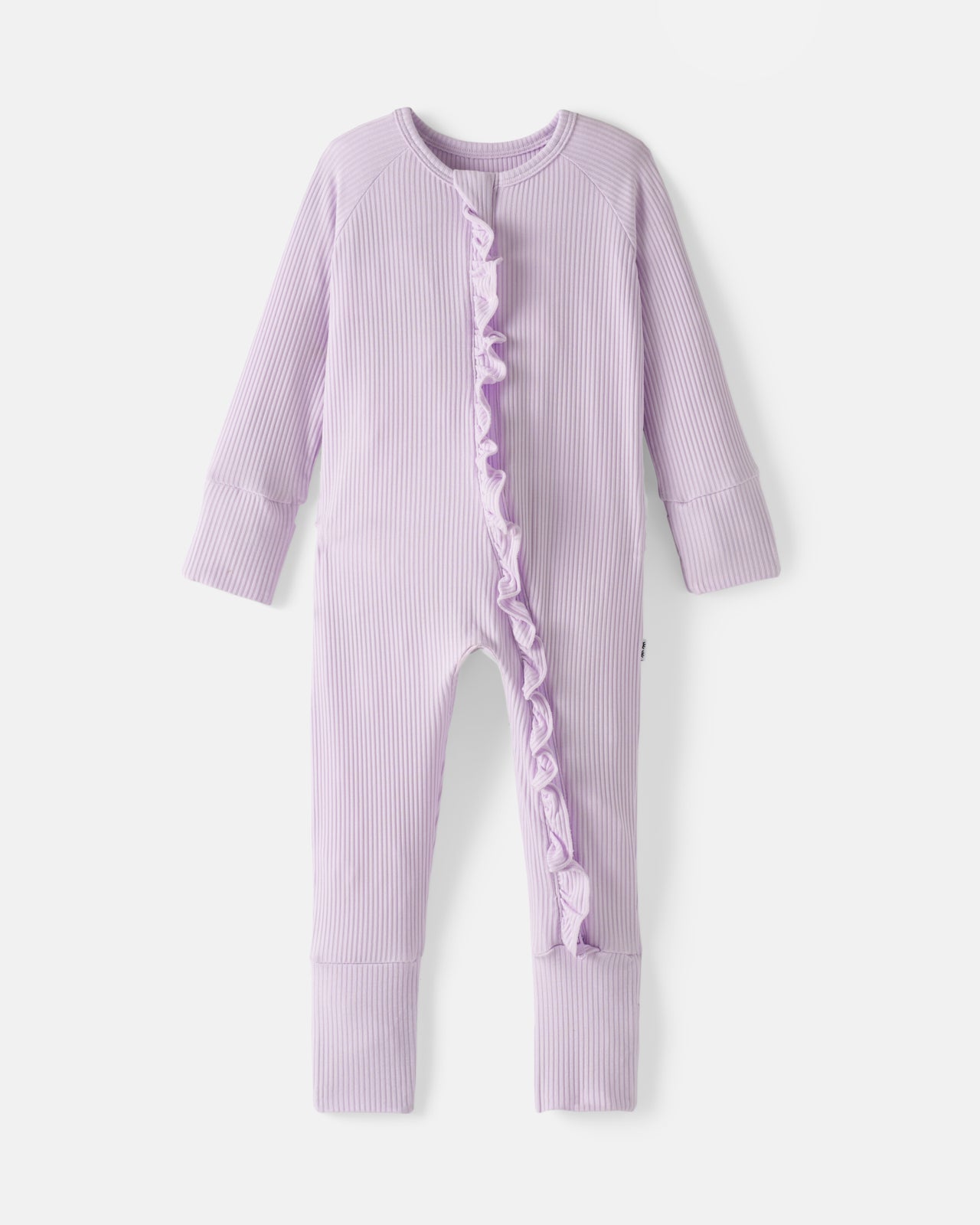 Add a little more comfort to those first winter memories. Made from soft ribbed bamboo. this Misty Lavender Ribbed Ruffle Zippy is so gentle on baby’s delicate skin. It boasts mama-designed details you’ll love. like fold-over mittens to protect tiny cheeks. convertible feet to keep tiny toes warm. and a double zipper to make middle-of-the-night changes easier. The ruffles on the back make every moment cuter!