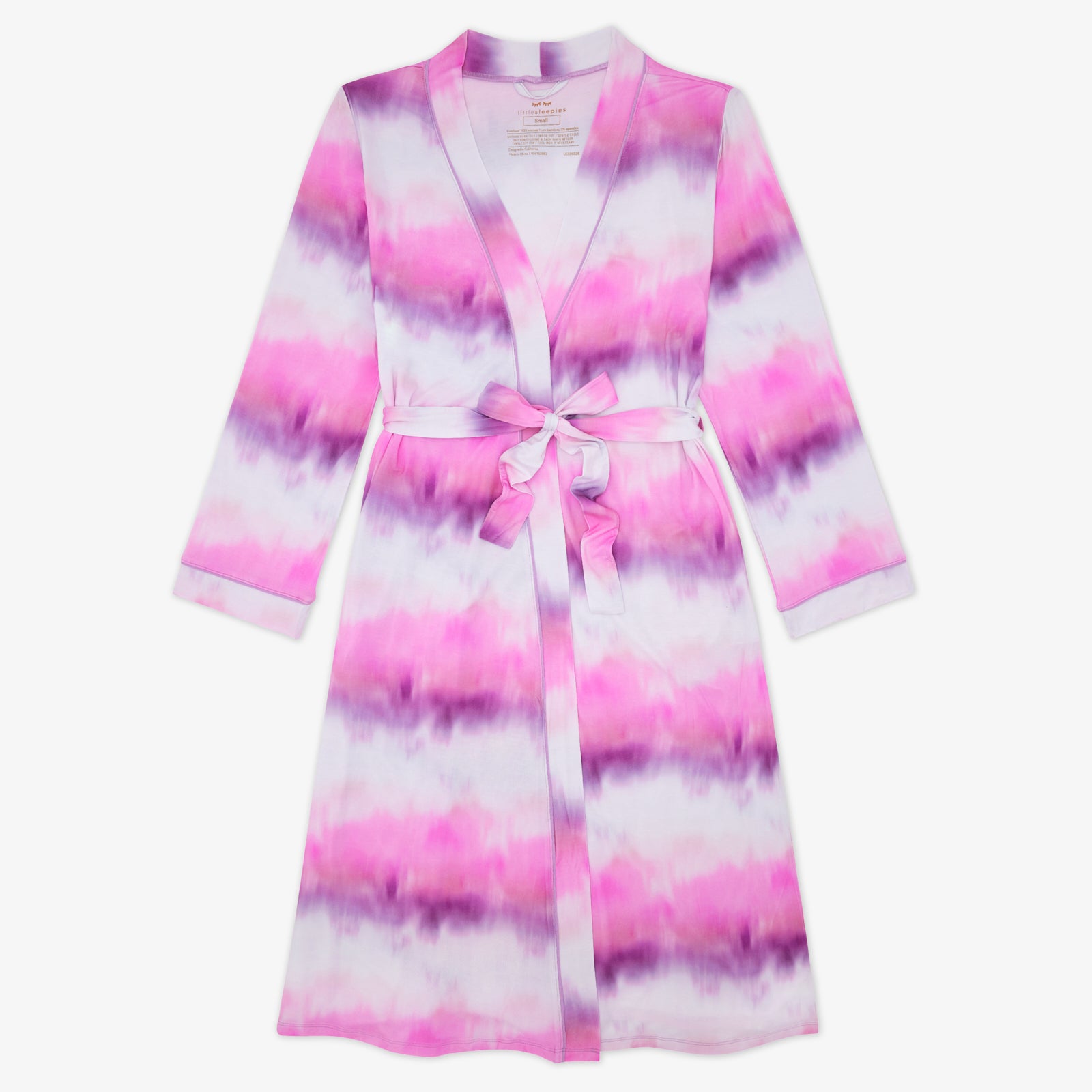 Cozy up in cosmic comfort! This women’s bamboo robe features soothing watercolor waves in a pink ombr?? design. Made from custom-milled Lunaluxe? Bamboo. it boasts two side pockets. contrast piping details. and a relaxed. bump-friendly fit. Pair it with the matching PJs for the dreamiest mornings with the fam!
