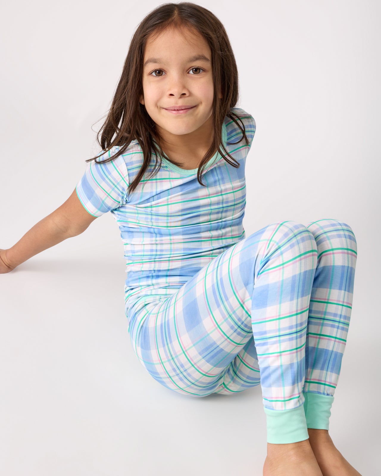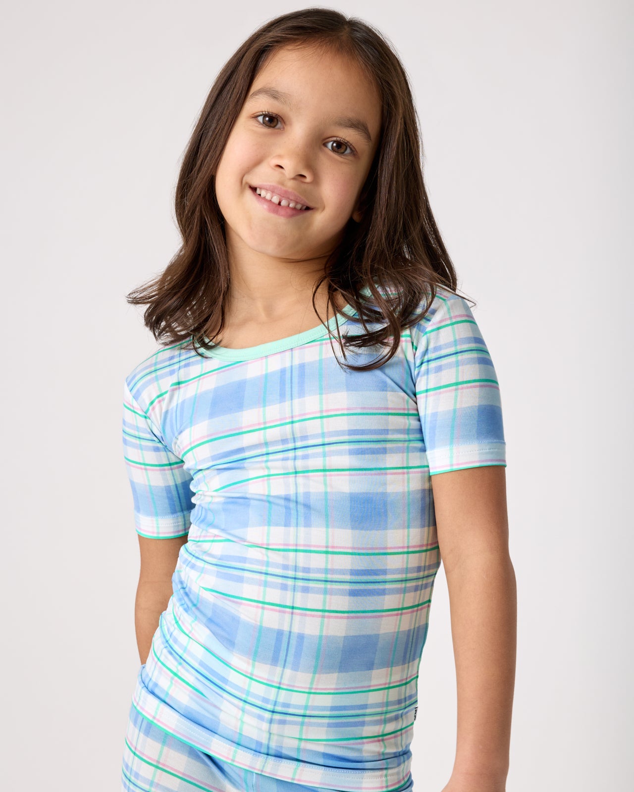 A fresh take on Easter. The Springtime Plaid Two-Piece Pajama Set features a classic plaid in soft blue and mint green tones. Made from our signature Lunaluxe® Bamboo. it’s ultra-soft with a short-sleeve top and matching pants made for comfort (and potty training!). No snaps. no tags ??just comfy-cute jams for your little one.
