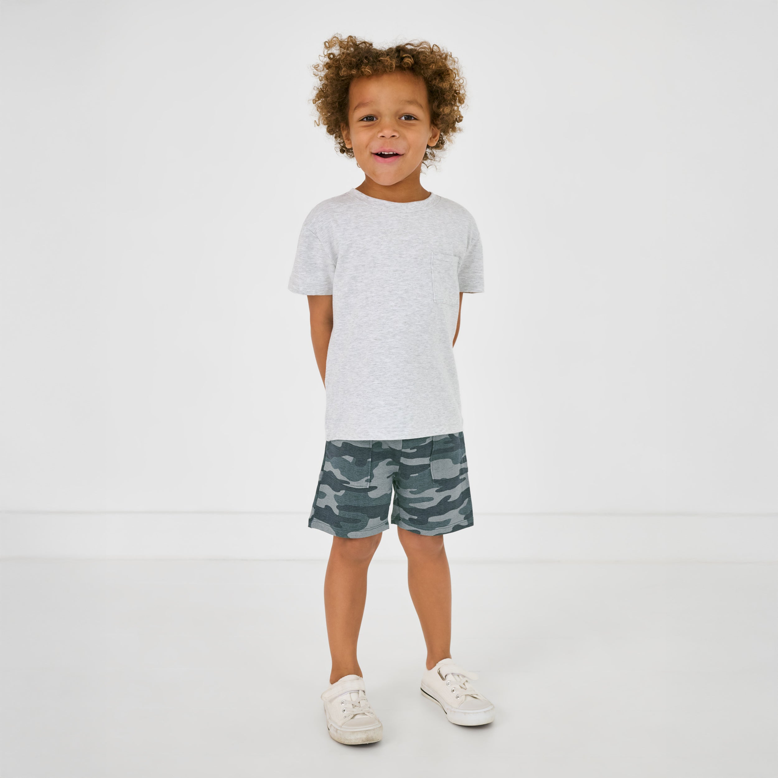 Cool kid alert! These Vintage Camo Shorts are made from our super soft & durable Soluxe® Bamboo. with a stretchy elastic waistband and deep side pockets for keeping treasures. We love them paired with the matching tee or sweatshirt!